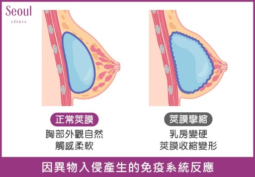 莢膜攣縮也叫「包膜攣縮」,是一種人體免疫系統,因為異物入侵而自然產生的反應。當植體放入乳房時,身體就會自然產生一層薄膜包裹植體,也因為形似豆莢,所以稱之為「莢膜」。莢膜攣縮也是可能導致隆乳手術失敗的潛在因素,常說的「石頭奶」就是莢膜攣縮所引起!