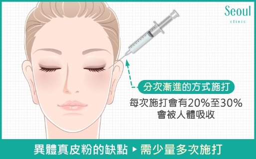 每次施打會有20%~30%會被人體吸收,因此若想達到100%的效果,建議採取「分次漸進」的方式施打。