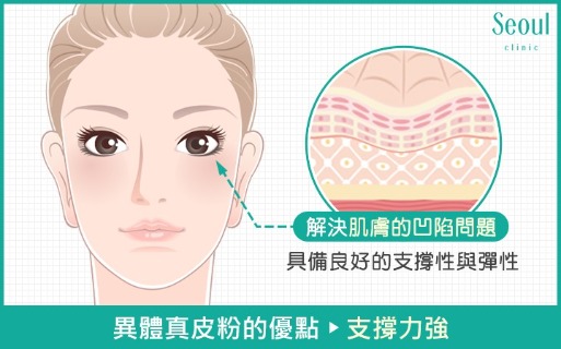 異體真皮粉具備良好的支撐性與彈性,解決肌膚的凹陷問題。