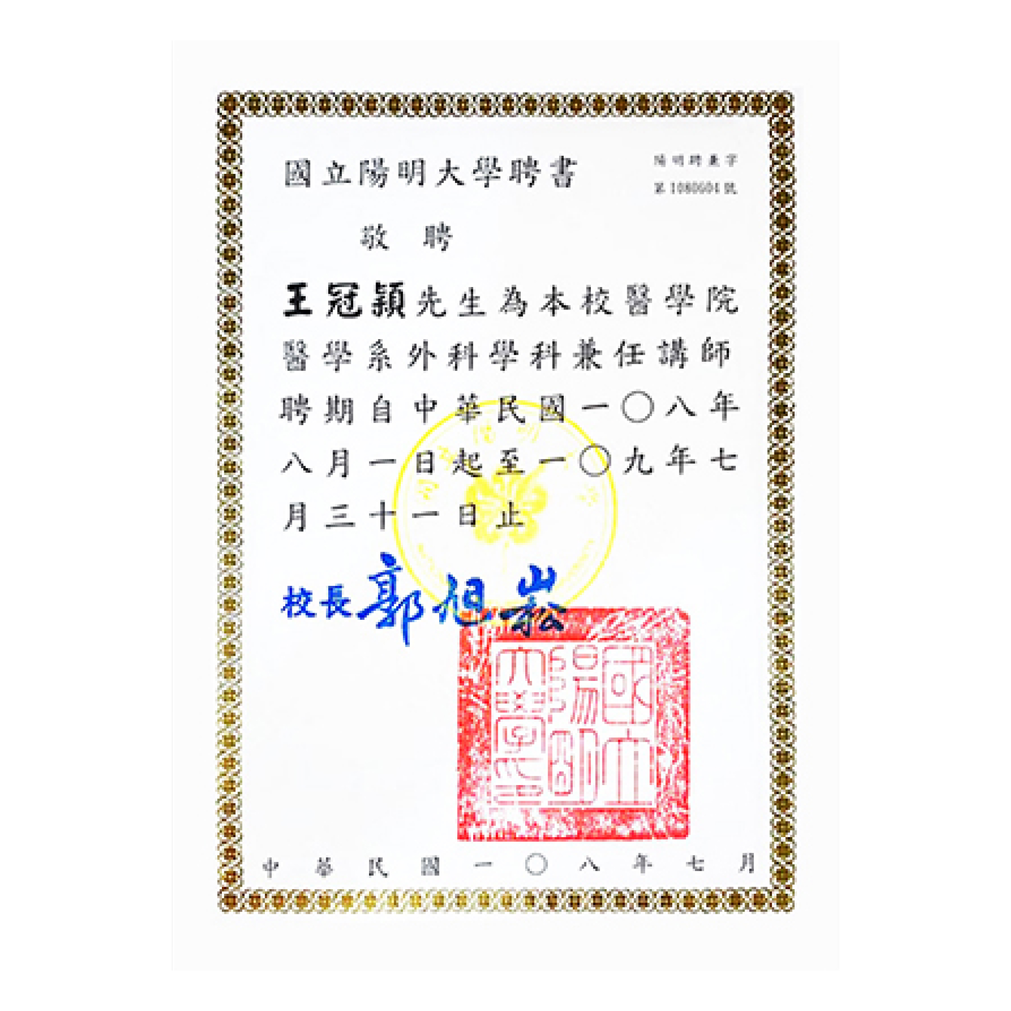 陽明大學醫學系 講師
