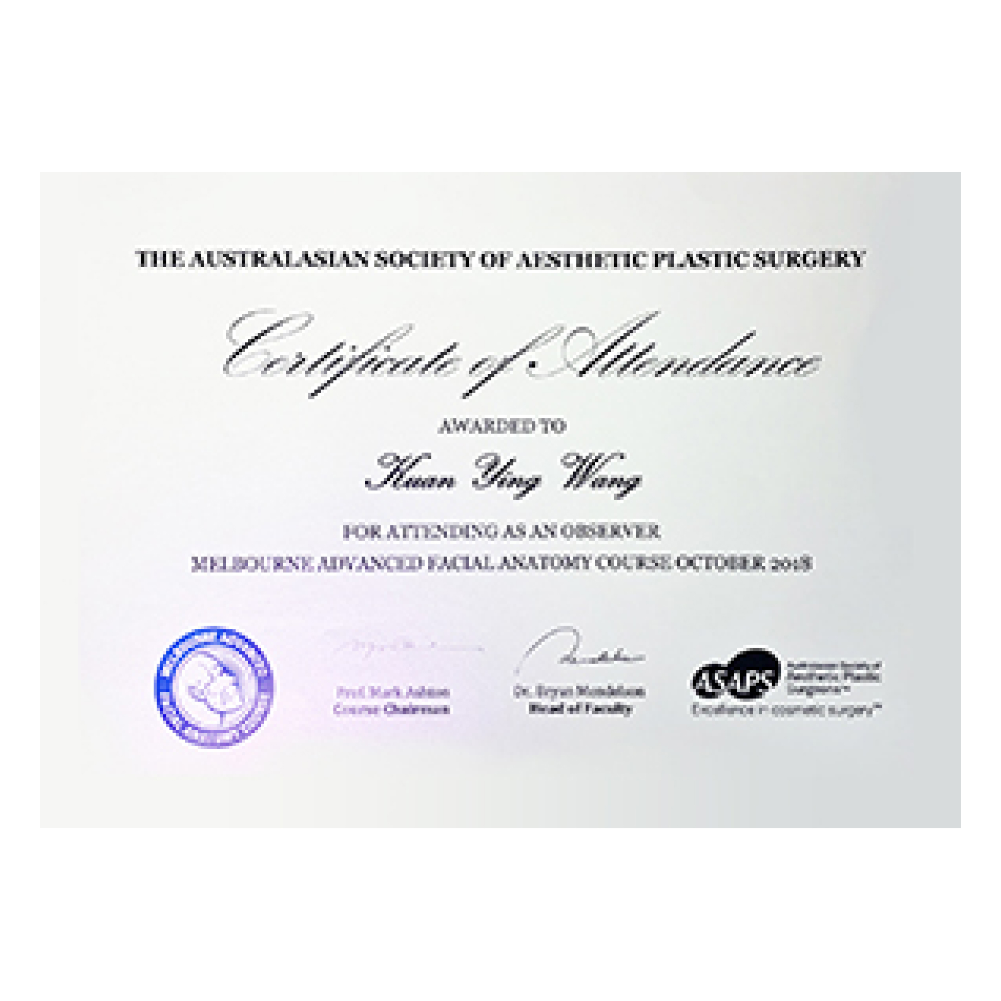 2018澳洲皇家醫學會進階拉皮手術進修