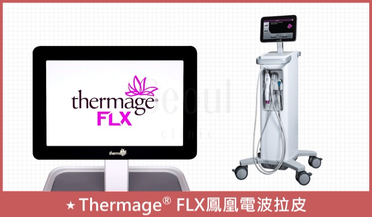 • 特色:同為Solta Medical製造的Thermage® 第四代FLX鳳凰電波拉皮,是CPT黃金電波的進階版,運用每秒振動約678萬次的高頻電波在皮膚形成的電阻作用產生熱能,能自動微調每吋肌膚所需的能量,達到治療最優化。全新升級版探頭增加了治療面積,可幅縮短療程時間、運用全方位的震動模式,降低後續加熱的不適感